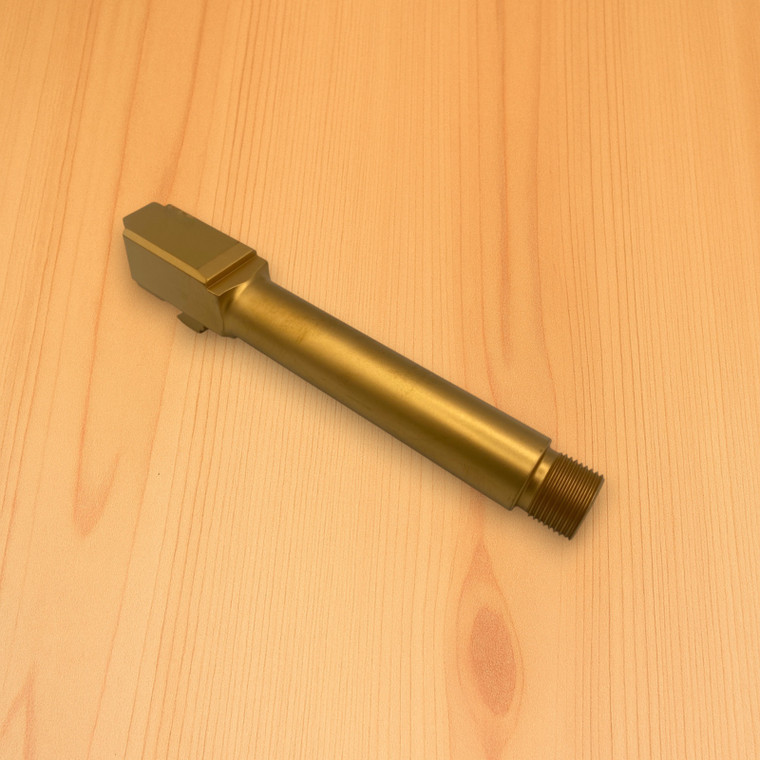 Kineti-Tech GLOCK 19 GEN. 3 compatible 9mm caliber Gold TIN Finish -THREADED. For Gen 3 ONLY. Will not be FLUSH in Gen 5.